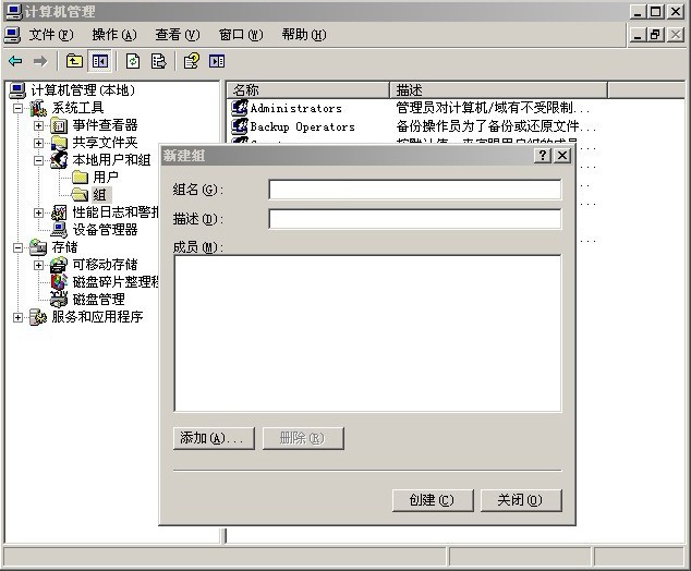 请选择 “控制面板/管理工具/计算机管理/本地用户和组/用户”,在这里,我们就可以找到本域服务器的所有用户了,比如从USER1到USE20。为了管理的方便,我们可以把这些用户建立为一个组,如“生产部”。打开组,在右边的空白处新建一个组,名称设置为“生产部”。然后打开“添加/高级/立即查找”菜单,在用户列表里,按住“Ctrl”键把用户USER1到USE20全部选中,加入到组后可以方便日常管理。