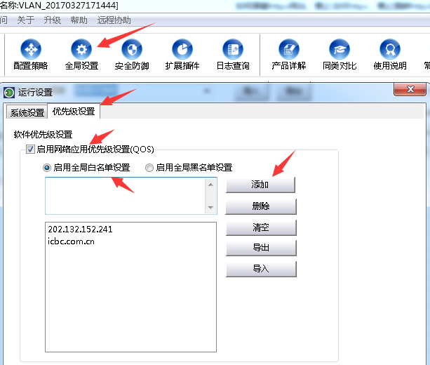 至此,我们就实现了对HTTPS网站的全面过滤。但是,有时候我们需要访问网银、报税等网站,而此类网站通常也采用HTTPS技术,因此如果按照上面的方法,则会无法访问此类网站,这显然违背了网络管理的初衷。这种情况下,我们可以借助于“聚生网管”的全局白名单来实现放行特定的HTTPS网站。如下图所示: