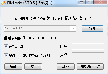 而如果用户一旦关闭 FileLockerMain.exe 客户端,将会无法访问共享文件,必须重新运行方可访问共享文件。