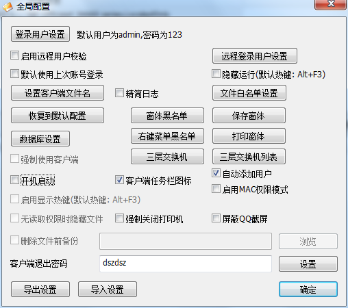 登录用户设置:在这里可以增加或删除软件的登录用户。