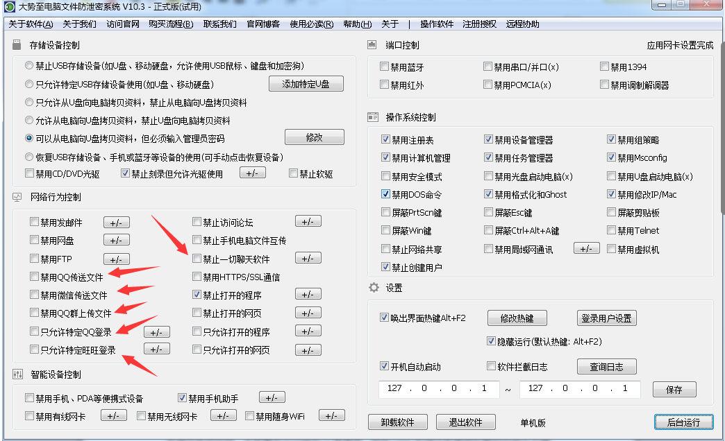 对于这种情况,企业可以直接将不符合规定的应用程序禁止。当然有些程序如QQ,可能是公司与外部即时沟通的必要工具,因此不得不开放权限,但是又担心有人利用这些通道做一些与工作无关甚至危害企业信息安全的事情。这种情况下首先可以严格管理使用这些程序的终端,其次对进行详细的操作审计,记录通信内容,通信时间等信息,一方面从心理上产生一定的威慑力,一方面当出现问题时可以随时进行查询。