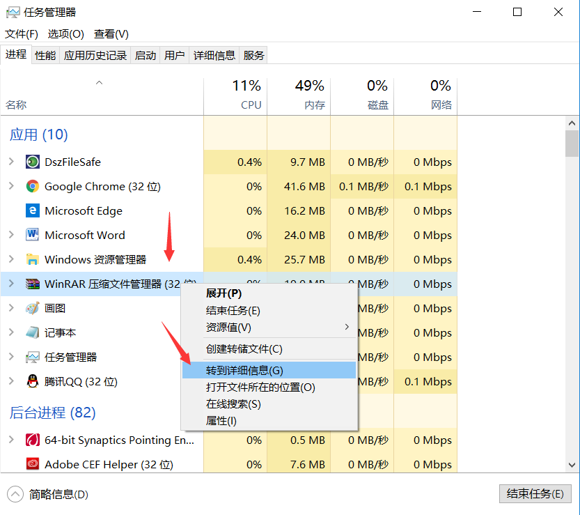 同时,你也可以在进程里面自行查看程序的进程名字和文件描述(即进程描述),既可以在进程里面查看,又可以转到详细信息进行查看。如下图所示: