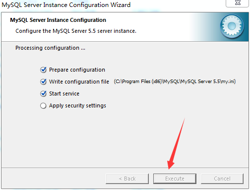然后需要配置mysql数据库的访问密码,例如:123。完毕后点击“excute”,执行后提示、成功即完成安装。如下图所示: