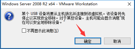 点击之后,操作系统会提示,然后点击“确定”,如下图所示: