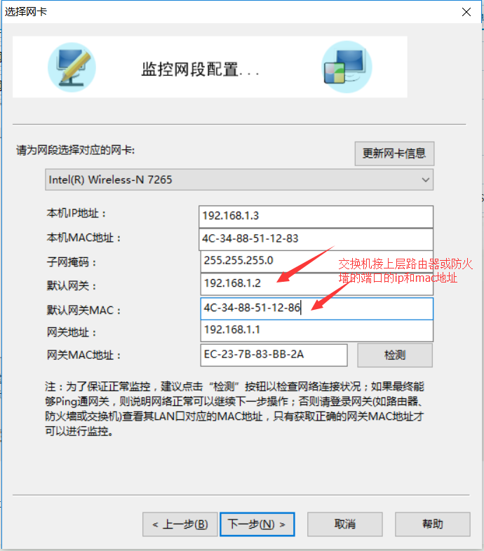 然后只需要填写级联上层路由器的接口IP和MAC地址即可,如下图所示:
