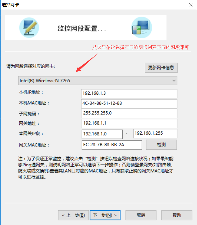 同时,在聚生网段创建监控网段时,应该选择“新健多网段监控”,如下图所示: