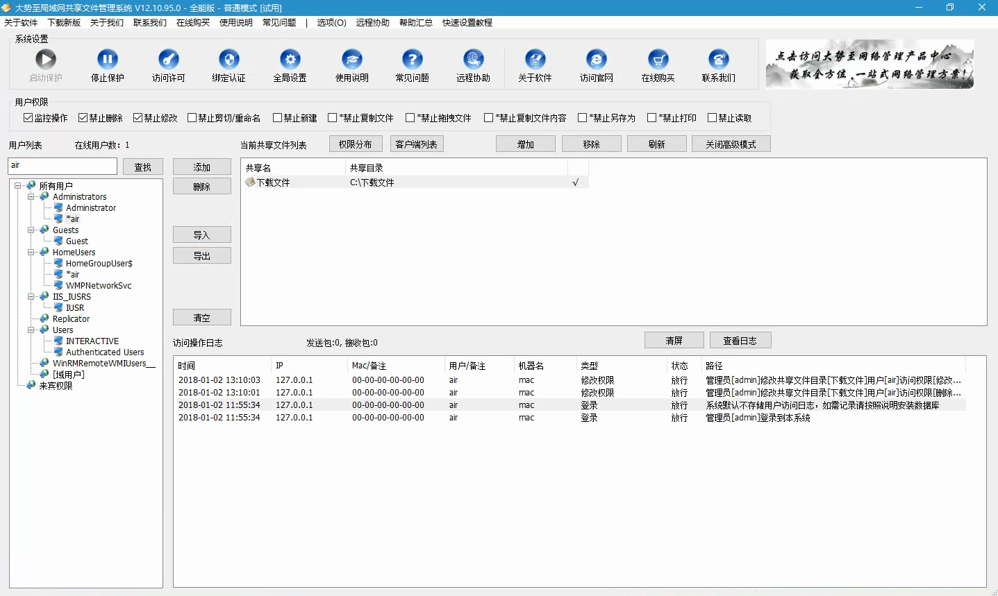 11、详细记录共享文件访问日志、共享文件夹访问日志、共享文件夹访问记录,便于事后备查和审计。