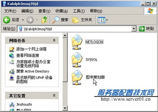 第4步,访问有权限限制的共享资源。在客户机中以有足够权限的用户身份登录AD域中,打开“网上邻居”窗口。在【地址】编辑框输入UNC路径或单击“整个网络”按钮查找用户有权限访问共享资源,如图3所示。