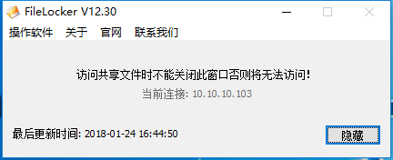本模块主要是为了配合主程序实现对用户访问共享文件行为的进一步控制,通过客户端(FileLockerMain.exe)可以禁止用户打开共享文件后另存为本地磁盘、禁止复制共享文件(包括打开后复制里面的内容)、禁止打印共享文件等。同时,在主程序启用二次用户校验的情况下,一旦访问者停止访问共享后再次访问共享,必须在客户端输入管理员为其预设的用户名和密码才可以再次访问共享文件,否则将拒绝其访问。