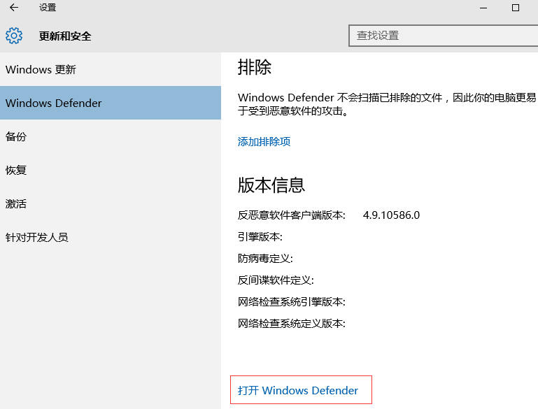 如果您无法打开Windows Defender,则需要看下文的方法。