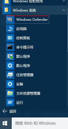 点击开始菜单,在Windows系统中,找到并点击打开Windows defender;