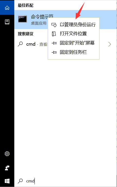 开始-运行-cmd-右键以管理员运行,如下图: