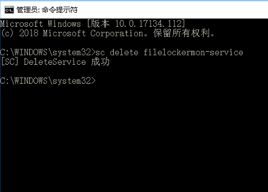 然后删除大势至共享文件管理系统客户端的服务(命令为:sc delete filelockermon-service):filelockermon-service,如下图: