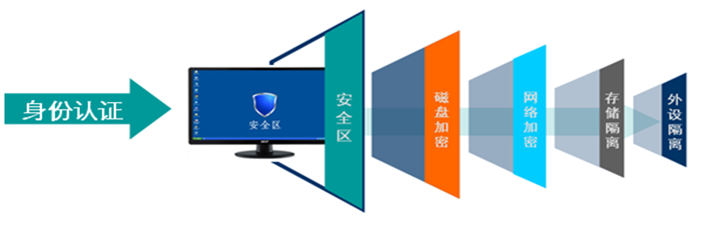 1、安全区磁盘隔离,进入须通过身份认证,可选用硬件KEY;
