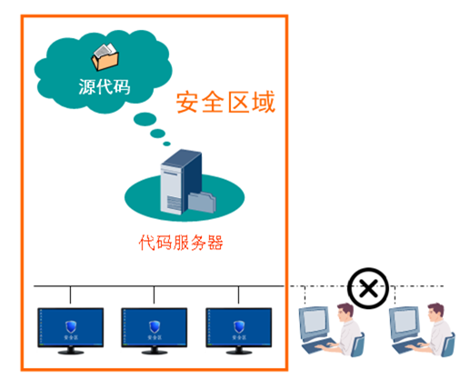 3、安全区网络通信隔离,源代码无法通过网络途径传输出去;