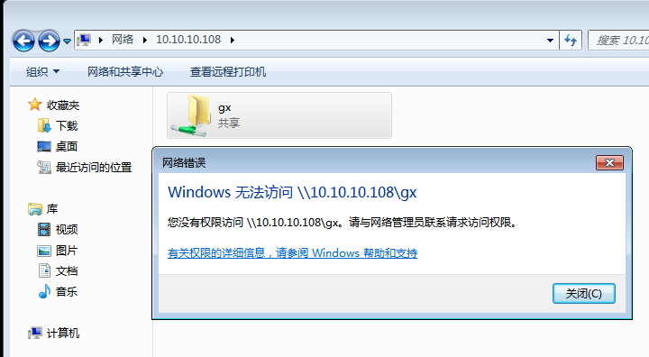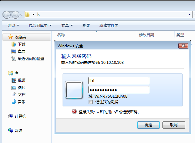 这样设置之后,只有“lisi”可以访问此共享文件夹了,其他用户访问时会提示错误,如下图: