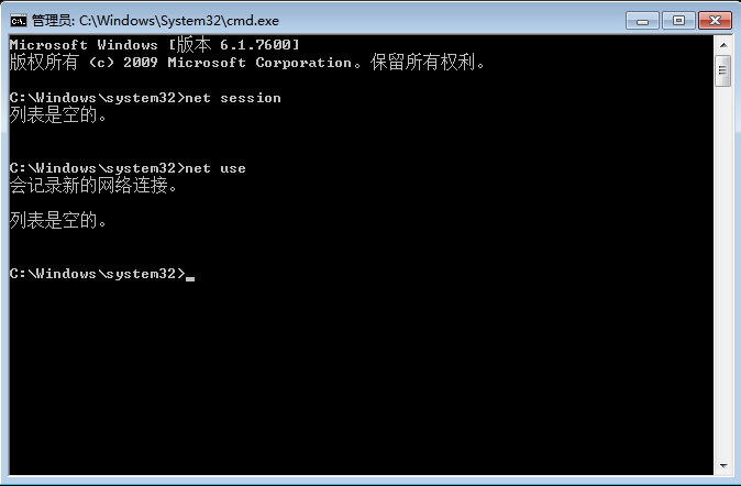 然后在命令下分别执行命令:net session /del /y 和net use * /del /y ,如下图: