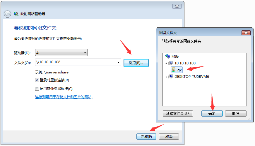 只不过,有时候会提示映射失败,这个时候通常需要在地址栏访问一下共享文件并实际打开一些文件后,再次映射就可以了。如果还是无法映射,则可以点击后面的“浏览”,这里同样也会显示共享文件服务器或者打开的共享文件夹,这个之后点击选中,然后就可以映射成功了,如下图: