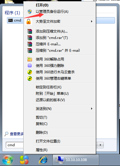 开始,运行,cmd,然后右键以管理员运行。如下图: