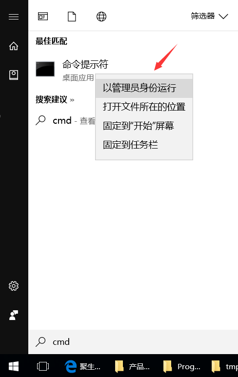 则需要以管理员运行DOS命令(win7启动管理员运行dos命令的方法:开始-运行-cmd,在出现的命令上右键点击“以管理员运行”;win10则点击开始,然后输入cmd,即可出现dos命令,然后再右键选择以管理员运行即可),如下图所示: