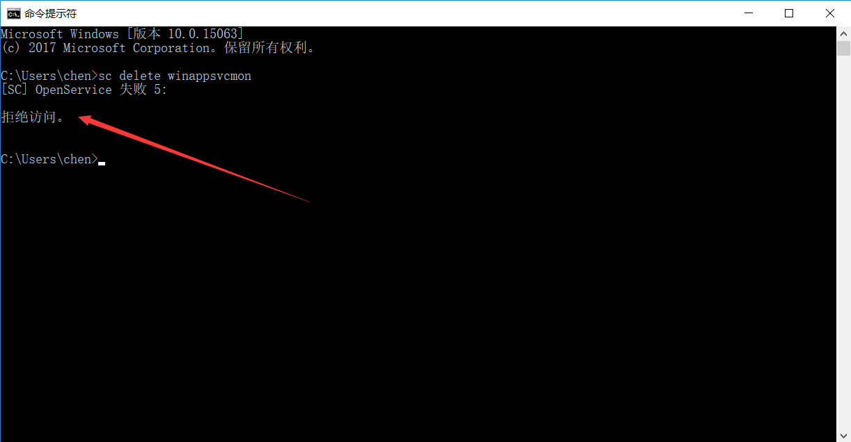 具体如下:开始-运行-CMD,然后输入sc delete WinAppSvc 回车即可,如下图所示: