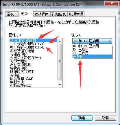 然后我们禁用网卡里面的这三个协议的校验功能即可。如下图: