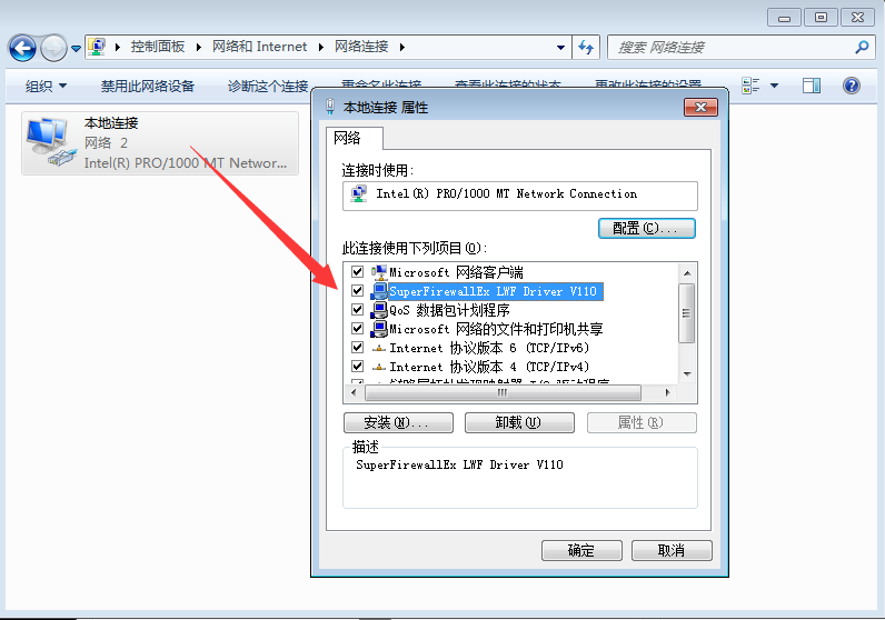 2、查看网络底层驱动(SuperFirewallEx LWF Driver V110 )是否成功安装。