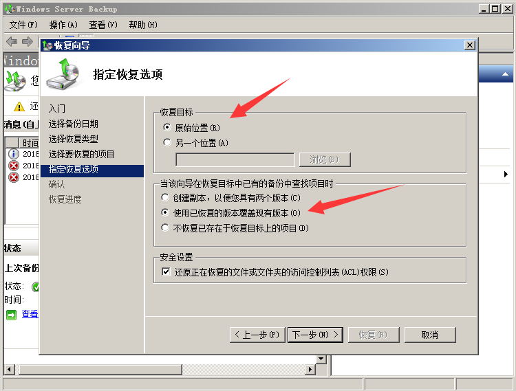2、“备份恢复”,是指一旦源文件出现问题后,可以在这里选择以前的“全量备份”和“增量备份”进行恢复。