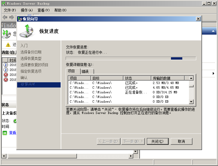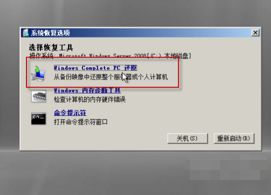 如系统出现故障,并且还可以启动进入 Windows Server 2008 系统,可以在 Windows Server 2008 下进行恢复。