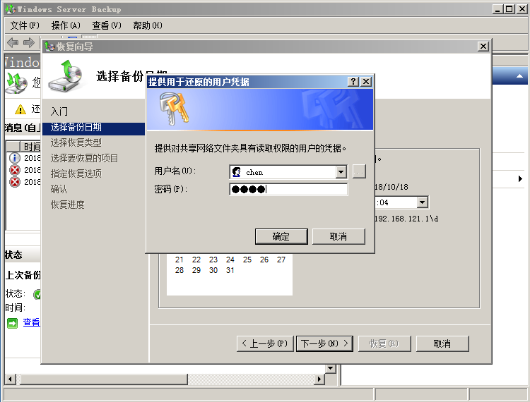同样需要输入凭据。(如果是外接移动硬盘,则需要选中移动硬盘的备份镜像)。如图: