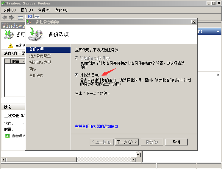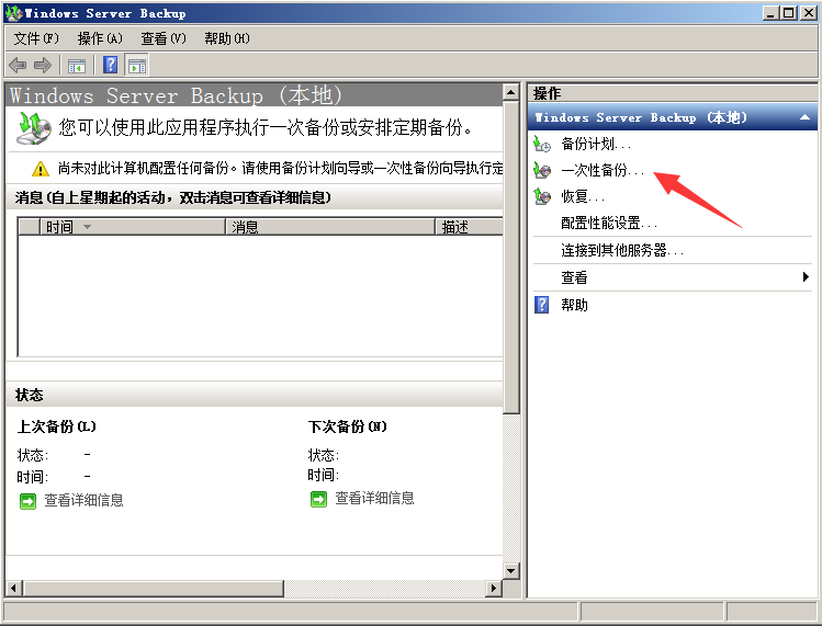 安装完成后,在开始菜单>所有程序>管理工具>Windows Server Backup