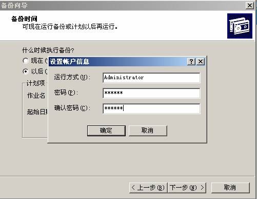例如需要每周日凌晨四点备份可以按照上面的设置,摄制完成后点击确定按钮,系统会提示输入备份密码,输入自己设置的密码后确定即可。