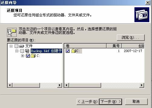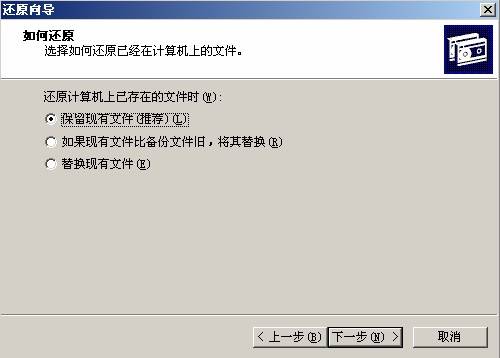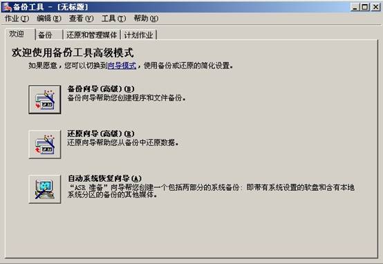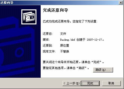 当您需要恢复数据时,还是开始—运行—ntbackup