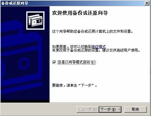 运行“备份或还原向导”(建议取消选择“总是以向导模式启动”)