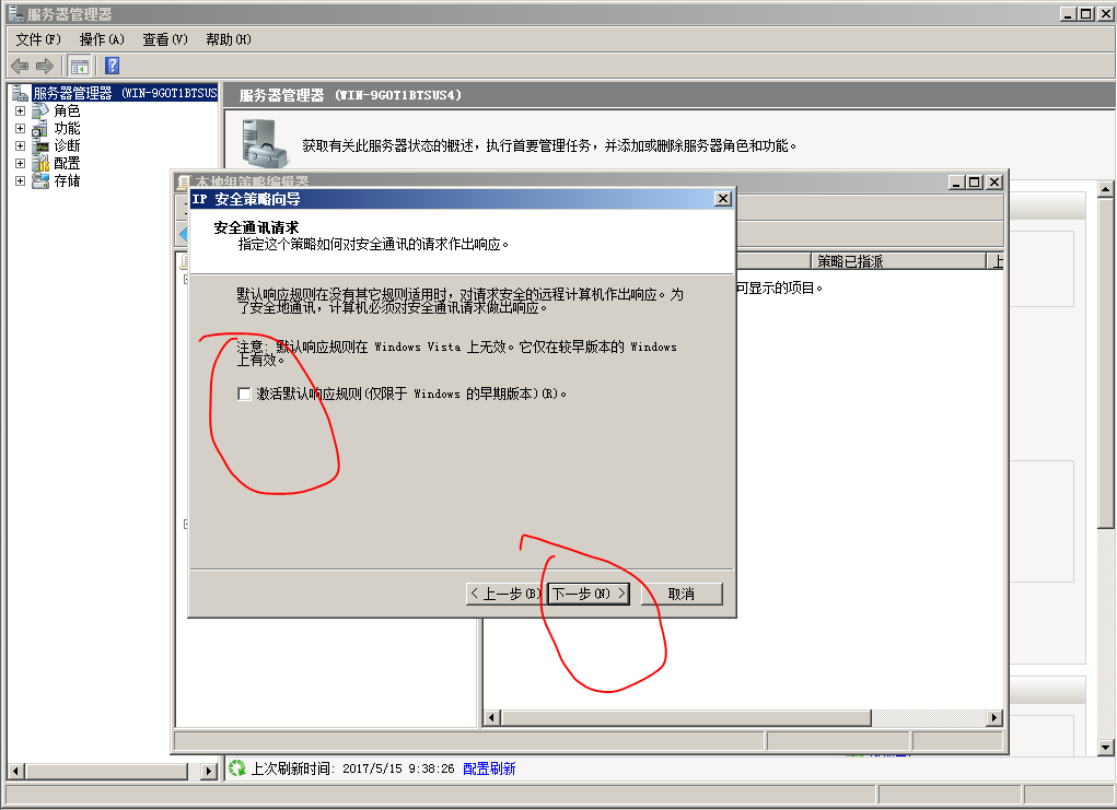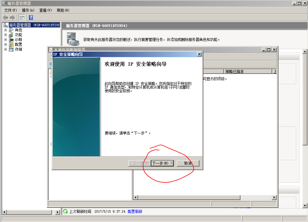 随后在跳出的“IP安全策略向导”中点击“下一步”