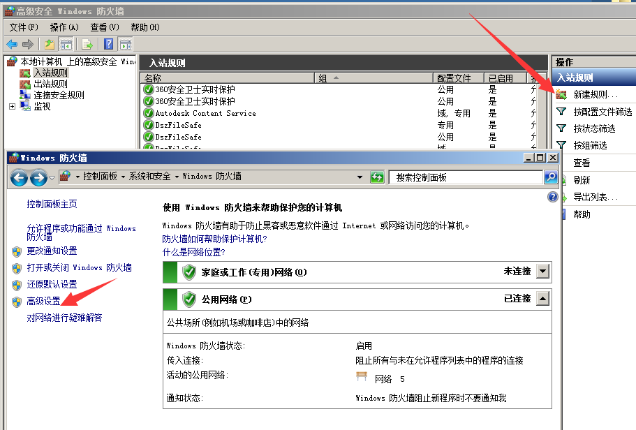 然后点击左侧的“高级设置”,并点击“新建规则”,如下图: