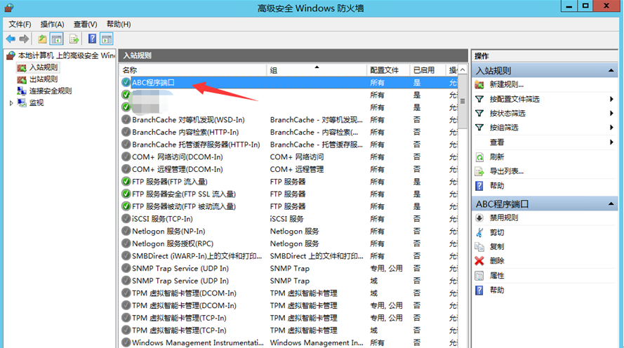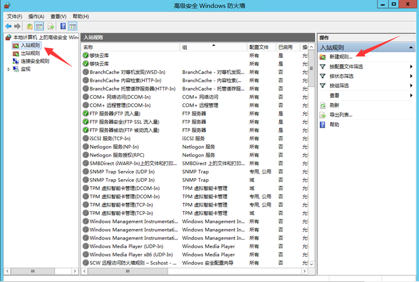 在Windows Server 2012系统中,如果用户想在防火墙中开通一个端口,您可以按以下步骤执行: