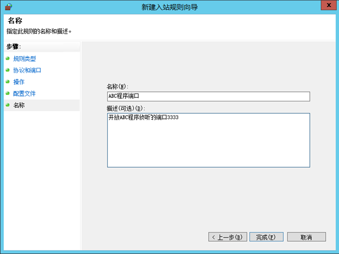 经过以上步骤的设置,就添加了开放的端口号,服务器防火墙就会自动放行,详细的信息可以点击设置的规则查看,比如可以设置详细的计算机连接、作用域的IP连接以及协议和端口中选择协议类型等等。