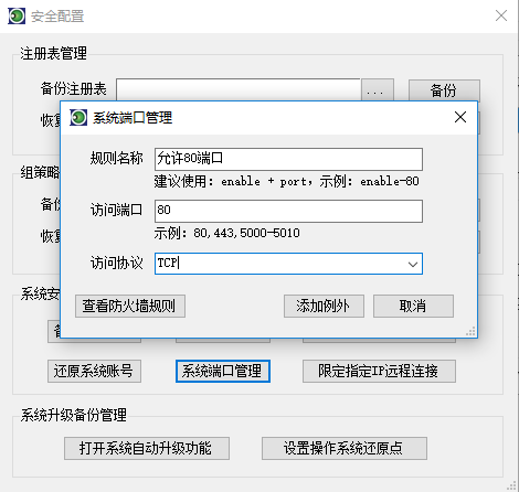 方法一、通过第三方端口管理软件来实现设置端口例外