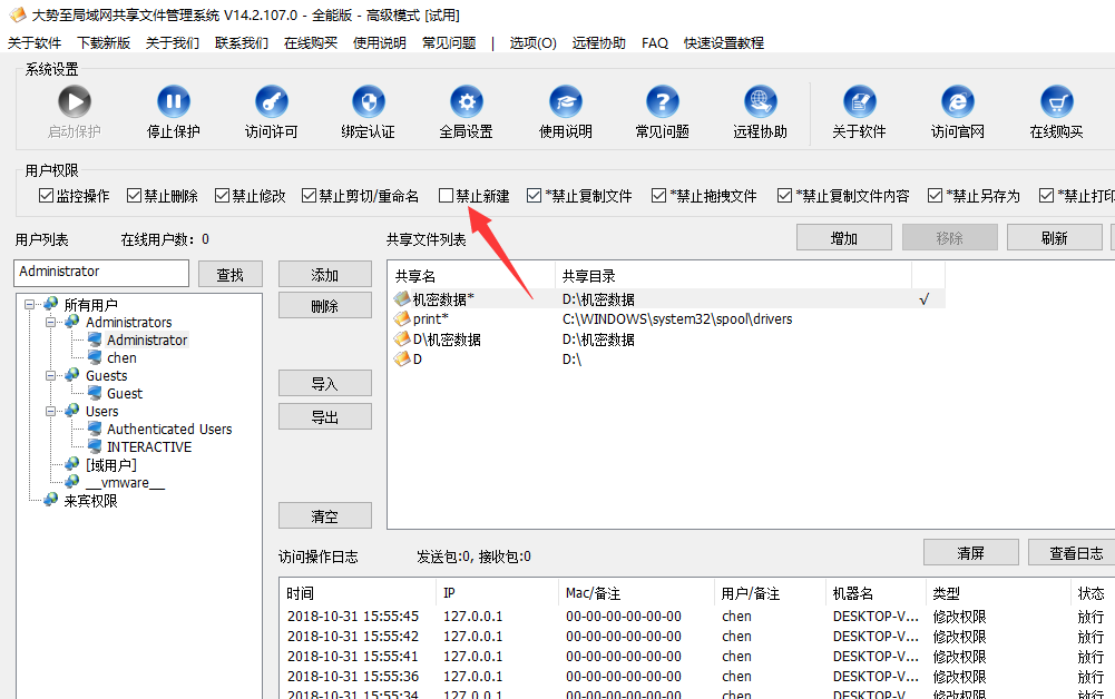 总之,要想实现对服务器共享文件访问权限的精确控制,单纯依靠操作系统的相关功能无法实现,需要借助于第三方专门的服务器共享文件权限设置软件、共享文件夹访问控制软件才可以。