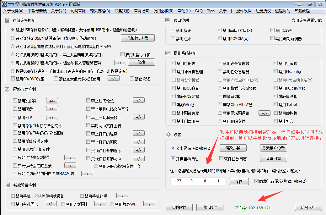 大势至电脑文件防泄密系统(下载地址:http://www.grabsun.com/monitorusb.html)是一款专门禁用U盘、禁止USB存储设备使用的软件。通过本系统可以有效控制USB接口使用、防止U盘拷贝电脑文件;禁止网盘上传电脑文件、禁止聊天软件发送电脑文件、禁止邮件附件上传电脑文件、禁止微信发送文件等,有效防止各种途径泄密电脑文件的行为。如下图:
