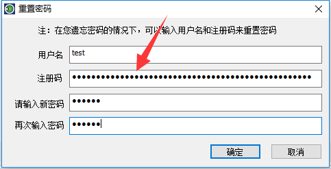 然后输入用户名、软件的注册码,就可以修改密码了。如下图:
