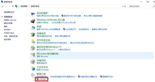 2.在“系统和安全”窗口中找到“管理工具”,并点击“计划任务”。