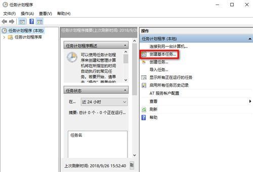 3.在“任务计划程序”窗口中找到右方操作“任务计划程序菜单”的“创建基本任务”。