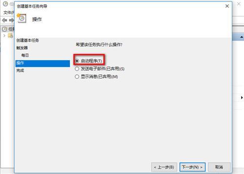 6.在操作中勾选任务的执行操作方式,备份数据的操作就勾选“启动程序”