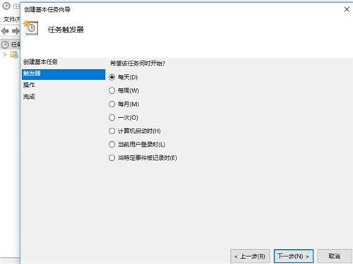 5.在“触发器”中选择任务开始的时间,例如选择每天,还有再进一步设定准确的时间,在这里可以设置为每天的几点开始这项任务,完成后进入下一步的“操作”。