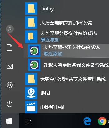 然后在“开始”,点击“大势至服务器文件备份系统”即可启动。如下图: