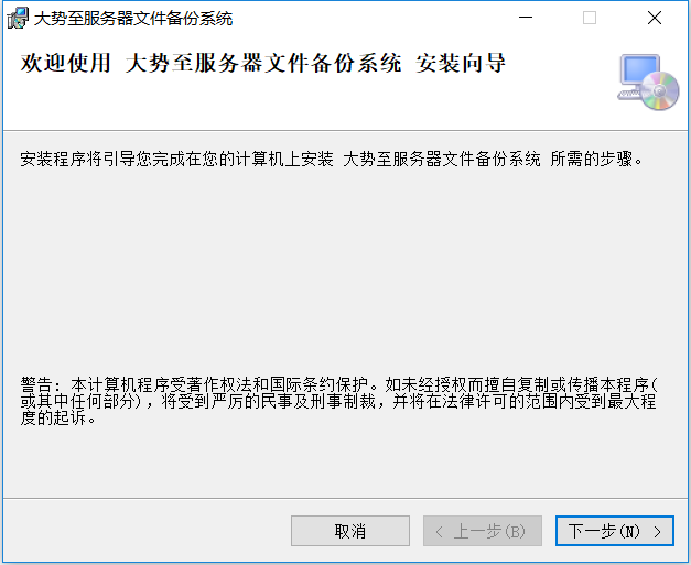 双击“大势至服务器文件备份系统”的安装包,然后点击“下一步”直接安装即可。如下图: