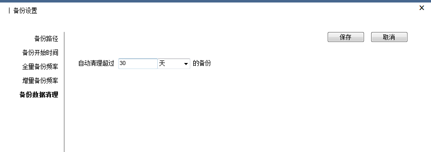 设置备份数据清理时间,如下图: