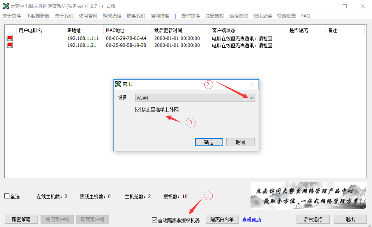 限制电脑安装随身wifi,禁止员工手机连接无线网络,禁止电脑文档外泄2017-11-23 / 3353次阅读 -